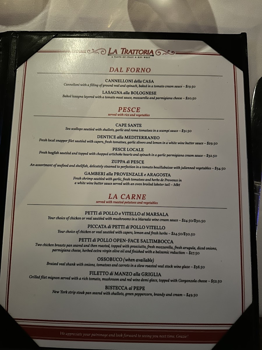 What truly elevates the experience is the attentive service—staff like Christopher and Tiffany ensure every guest feels special, particularly during significant occasions. The positive reviews highlight not only the wonderful food but also the warm, family-friendly atmosphere that makes La Trattoria a cherished spot in Key West.